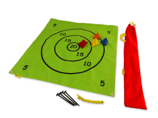 Gra w „rzutki” miękkimi woreczkami rozwija spostrzegawczość u najmłodszych i pozwala im czerpać ze zdrowej rywalizacji i ruchu. Dzięki temu, że zestaw jest niewielki i lekki, bez problemu zabrać można go w teren – i pobawić się z całą grupą w łuczników czy zdobywców nagród! Plansza może stanowić też element składowy toru przeszkód czy zabawy w podchody. Jeden zestaw umożliwia podjęcie szeregu wesołych i proedukacyjnych aktywności!