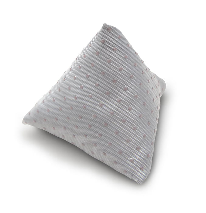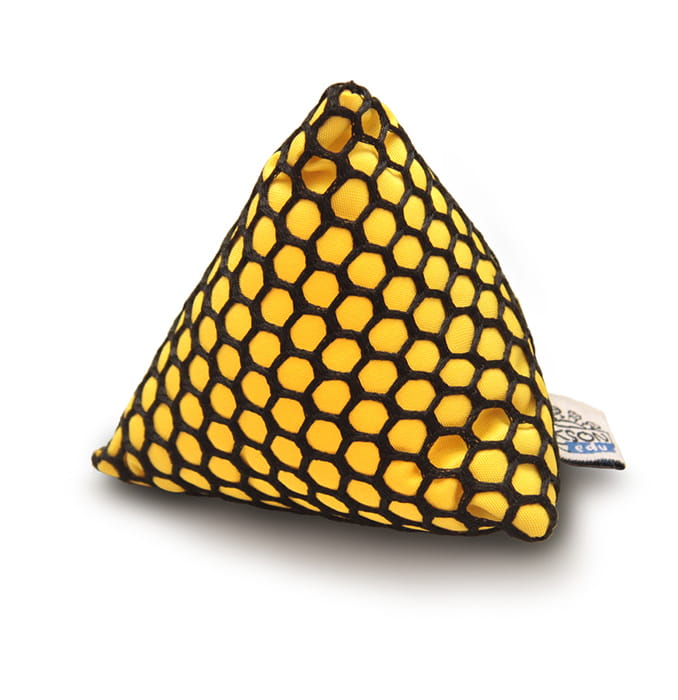 Zestaw 20 sztuk (10 par) woreczków sensorycznych w kształcie piramidek. Każdy woreczek posiada unikalną fakturę.