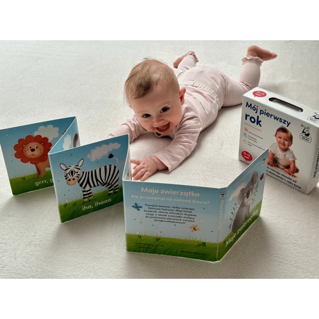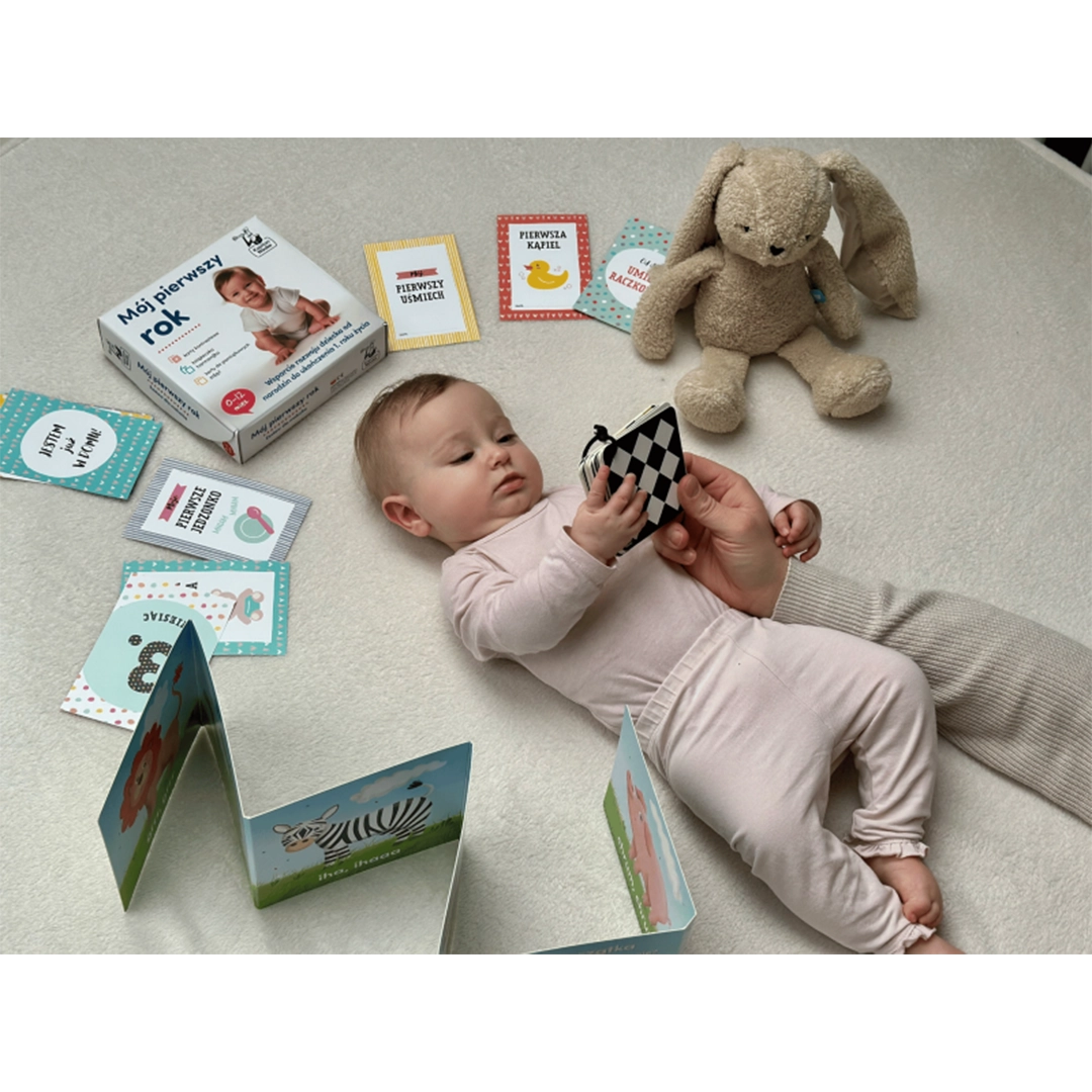 Mój pierwszy rok zestaw dla malucha to karty kontrastowe i książeczki dla niemowląt, które wspierają rozwój wzroku od первых miesięcy życia. Idealny zestaw dla dzieci 0+ rozwijający percepcję wzrokową i koncentrację.