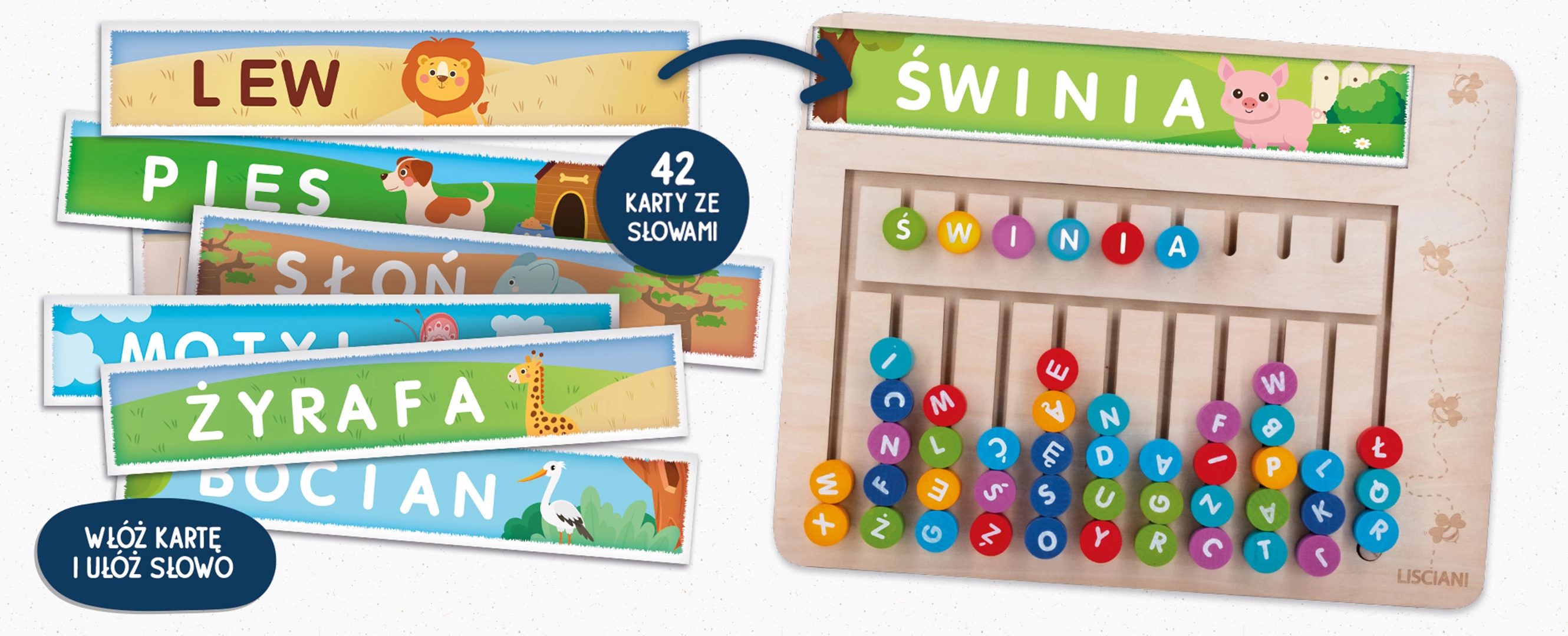 Montessori Słowne układanki - drewniany zestaw edukacyjny - Lisciani 3+