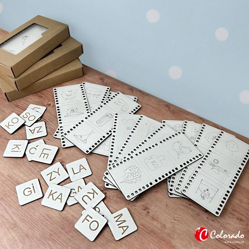 Sylabowy aparat fotograficzny komplet 6 szt to kompleksowa pomoc dydaktyczna stworzona z myślą o dzieciach powyżej 3. roku życia. Zestaw zawiera drewniany aparat fotograficzny, 99 płytek z sylabami oraz 24 drewniane klisze fotograficzne z obrazkami, umożliwiające tworzenie licznych słów i kojarzenie ich z odpowiednimi ilustracjami. Wykorzystanie metody sylabowej ułatwia dzieciom opanowanie umiejętności czytania w sposób angażujący i efektywny.