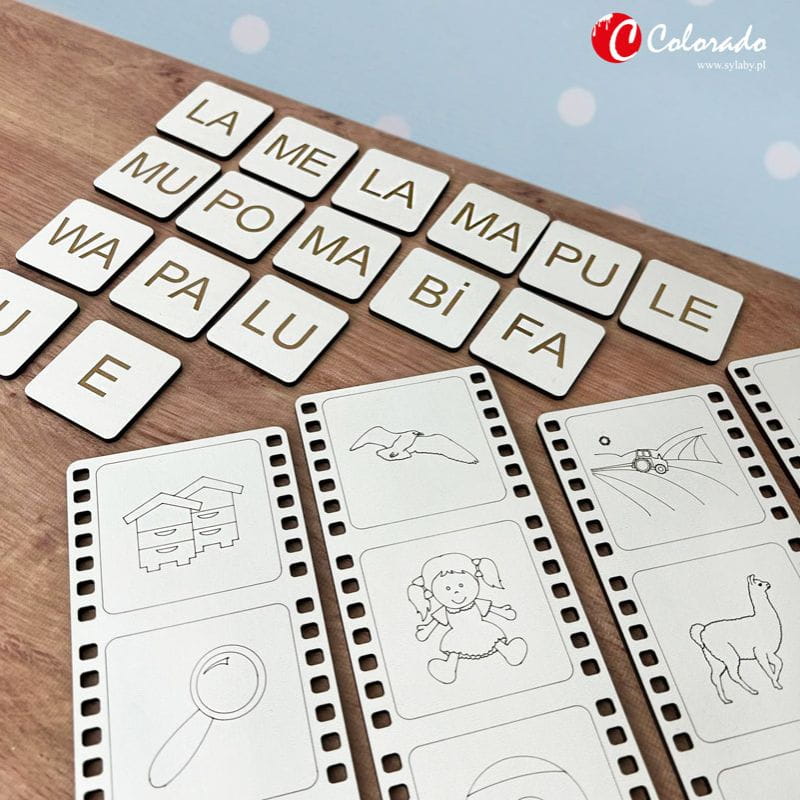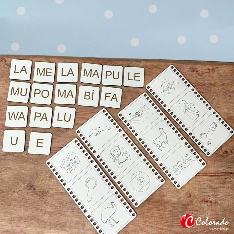 Sylabowy aparat fotograficzny stanowi niezwykle cenne wsparcie podczas nauki czytania zarówno w domu, jak i w szkole, czy nawet u logopedy. Warto z czasem rozszerzyć jego możliwości o nowe klisze wraz z odpowiednimi sylabami bez konieczności kupowania kolejnego aparatu. Na szczęście istnieje kilka dodatków, dzięki którym jest to możliwe. Prezentowany tutaj produkt wzbogaca podstawowy zestaw o kolejne dwanaście słów wraz z pasującymi do nich obrazkami (ule, lupa, emu, mewa, lalka, bile, pole, lama, fale, lawa, mama, puma). Wszystkie elementy są wykonane z bardzo trwałej płyty HDF o grubości 3mm i zapakowane w pudełko kartonowe. Produkt nie zawiera sylabowego aparatu fotograficznego, lecz stanowi dla niego rozszerzenie. Zestaw przeznaczony jest dla dzieci powyżej trzeciego roku życia. W ofercie posiadamy również inne dodatki umożliwiające rozszerzenie zestawu o kolejne sylaby oraz klisze fotograficzne.