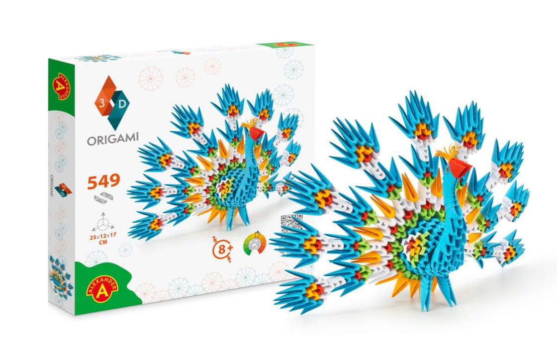 Origami 3D – Paw to zaawansowany zestaw kreatywny od marki Alexander, który pozwala na stworzenie imponującej, trójwymiarowej rzeźby w kształcie pawia. Zawiera 549 papierowych elementów, które po złożeniu tworzą efektowną figurę o wymiarach 25 × 12 × 17 cm. To doskonała zabawa dla dzieci od 8. roku życia, rozwijająca cierpliwość, precyzję oraz zdolności manualne.