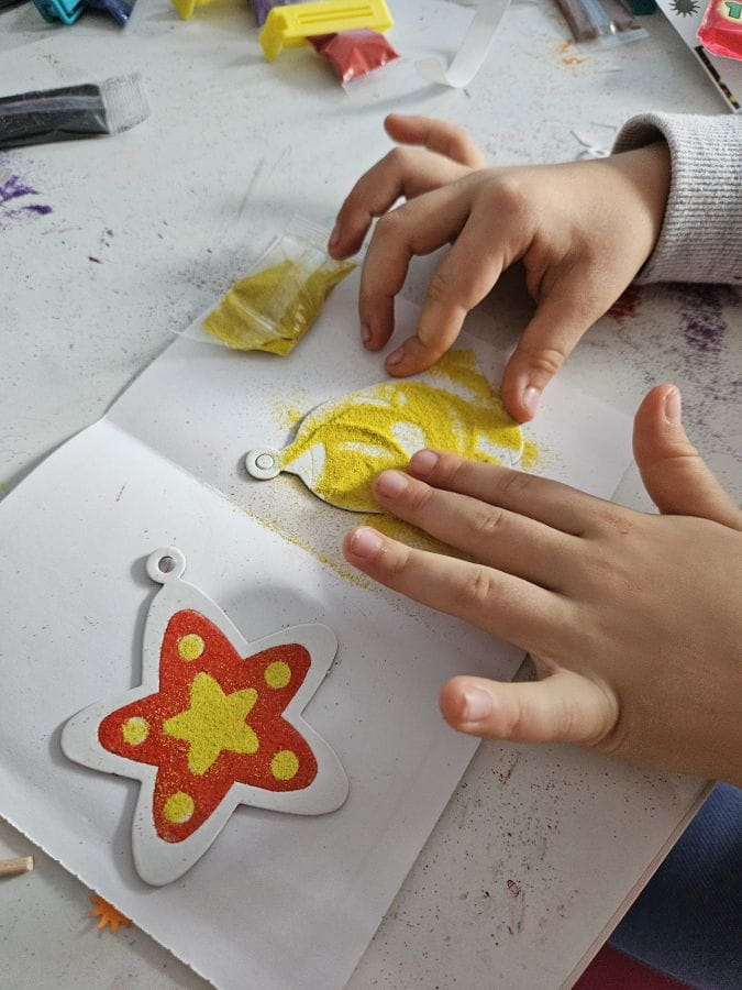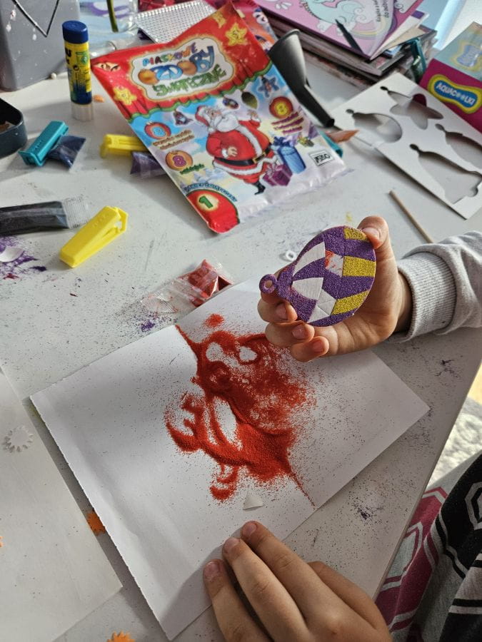 „Piaskowe Ozdoby Świąteczne” to kreatywny zestaw, który oferuje zabawę dla dzieci w domu lub w przedszkolu, a także dla całej rodziny. Jest to unikalna możliwość tworzenia elementów wyposażenia wnętrz, które mogą zdobić choinkę i wnętrza domów.