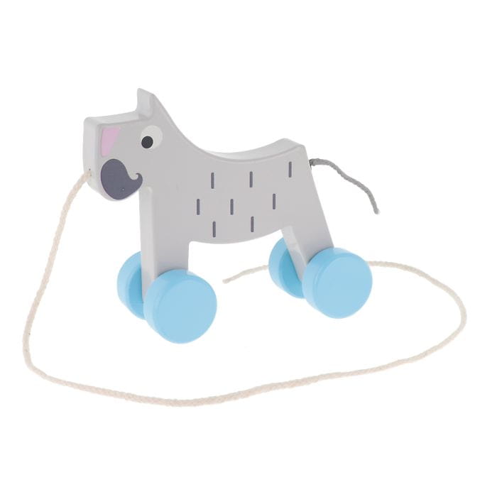 Piesek do ciągnięcia. Drewniana zabawka do ciągnięcia.