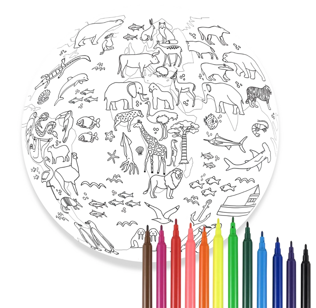 - Edukacyjna zabawa: Piłka globus pozwala na naukę geografii i przyrody poprzez interaktywne kolorowanie.