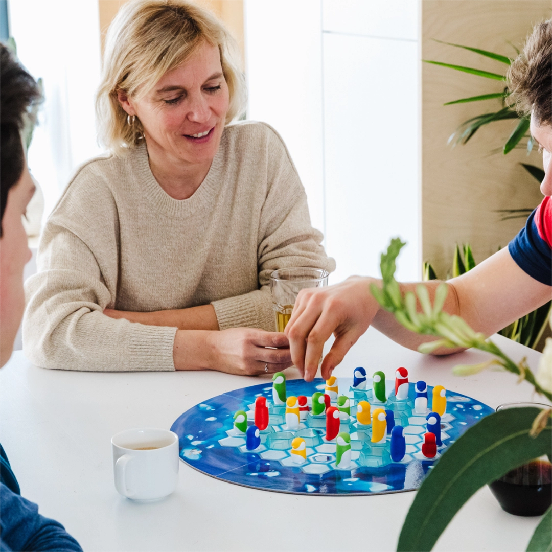 Podczas rozgrywki gracze na zmianę przemieszczają swoje pingwiny po planszy, wykorzystując płytki kry do tworzenia ścieżek lub blokad. Wygrywa ten, kto jako pierwszy zgromadzi wszystkie swoje pingwiny w jednej połączonej grupie. Dzięki dwóm poziomom trudności, gra dostosowuje się do wieku i doświadczenia uczestników, zapewniając wyzwania zarówno dla młodszych, jak i starszych graczy.