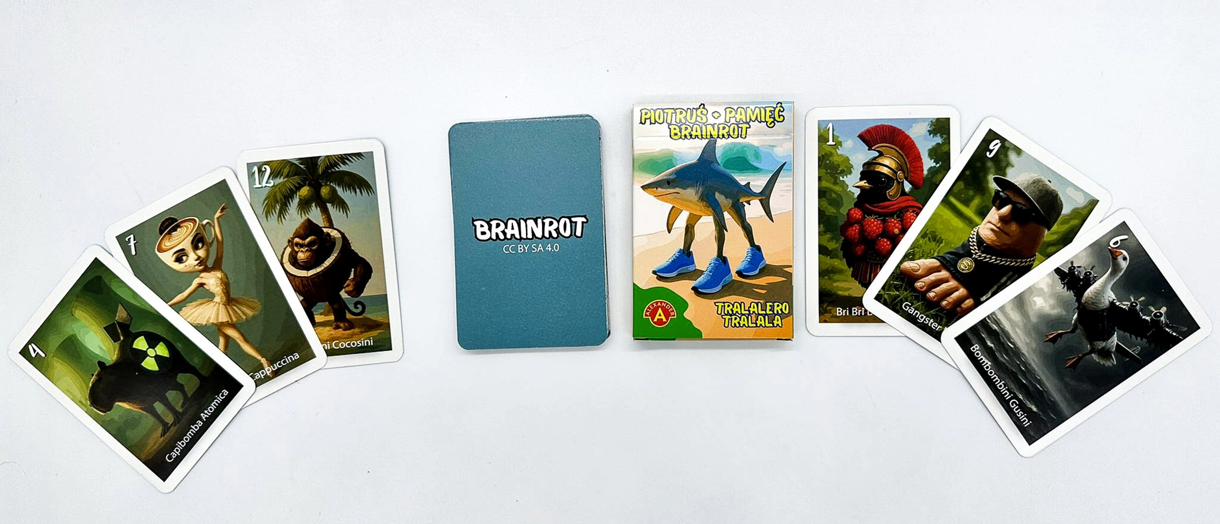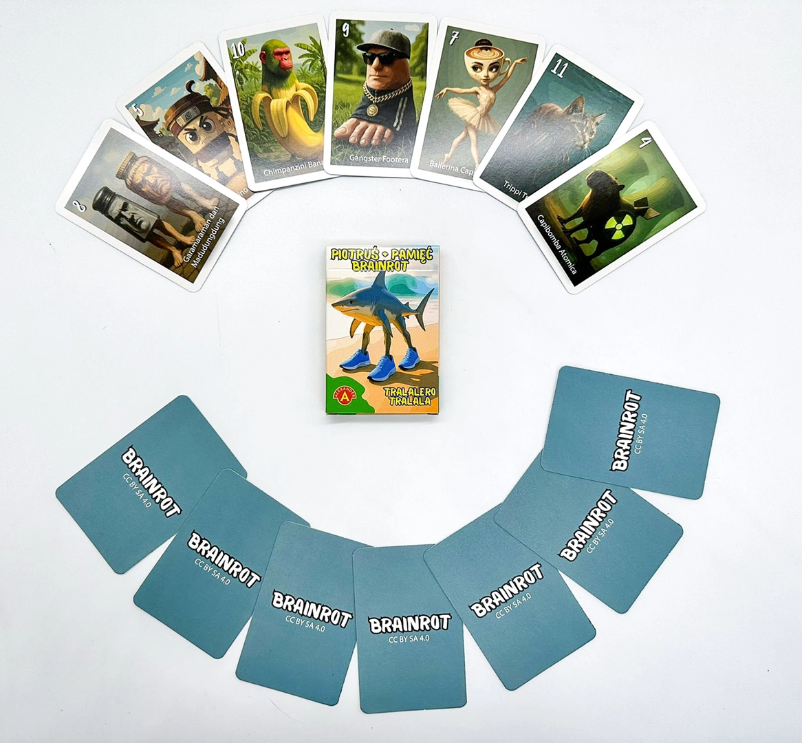 Jak w to się gra w praktyce? Po przetasowaniu kart każdy z graczy otrzymuje kilka z nich. W turze wybieramy przeciwnika i prosimy o konkretną kartę – lub dobieramy losową z jego ręki. Gdy uda się skompletować parę, odkładamy ją na stół. Gra toczy się szybko, a kolejne tury zachęcają do uważności i przewidywania, u kogo może znajdować się potrzebna ilustracja. Na końcu pozostaje jeden „Piotruś” – Tralalero Tralala – i to właśnie ten, kto go zatrzymał, przegrywa.