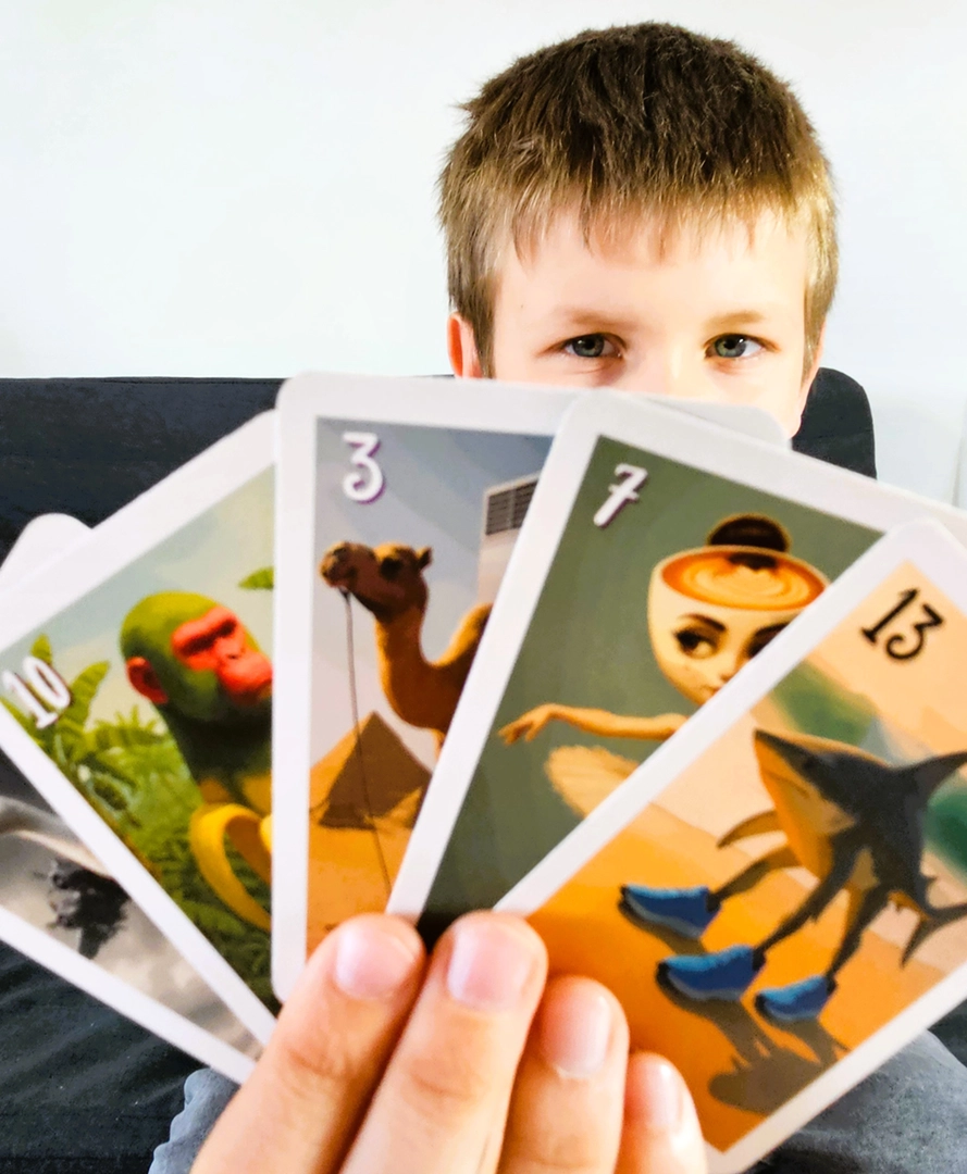 Atutem „Brainrota” jest także stylistyka – lekkie, dowcipne ilustracje nie są przesadnie „dziecinne”, przez co gra bawi szeroki przedział wiekowy. Dzieci odkrywają bohaterów z odrobiną szalonej fantazji: baristyczną balerinę, banano-didżeja czy figlarne połączenia zwierząt i przedmiotów. Te obrazki uruchamiają wyobraźnię i podsuwają dziesiątki tematów do rozmów podczas zabawy. Jednocześnie układ graficzny kart jest czytelny i sprzyja szybkiemu wyszukiwaniu par – co w grze dla dzieci od 4 lat jest kluczowe.