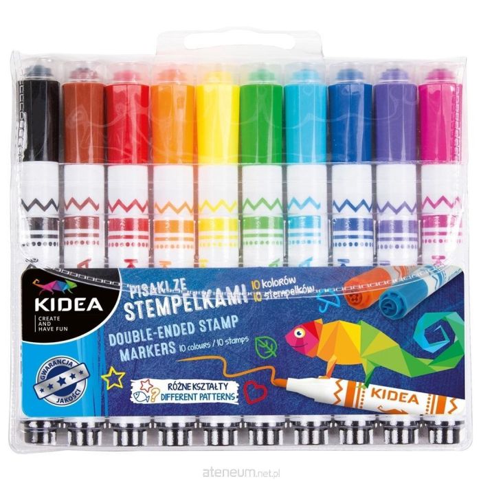 - 10 różnych kolorów pisaków ze stemplami