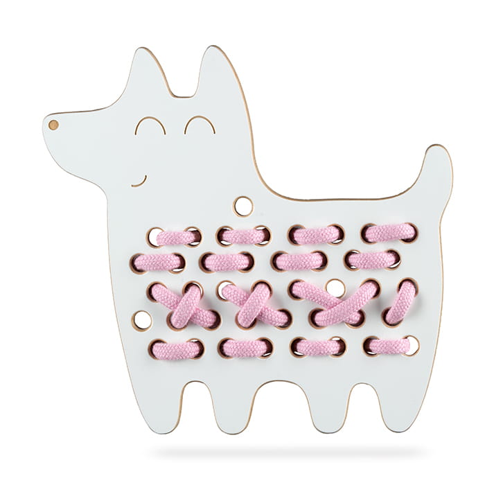 Drewniana przeplatanka dla dzieci Pies Oskar - sensoryczna zabawka zręcznościowa do motoryki małej