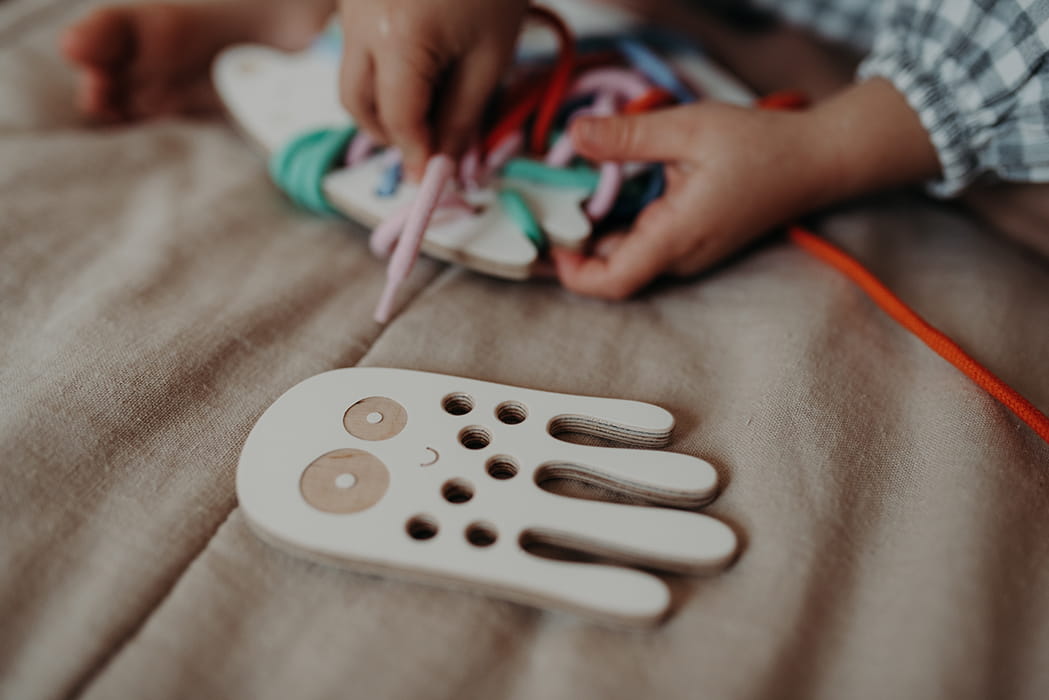 Drewniana przeplatanka dla dzieci Ośmiornica Matylda - sensoryczna zabawka zręcznościowa do rozwoju motoryki małej
