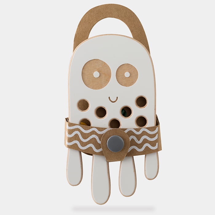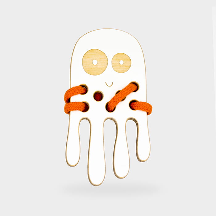 Ośmiornica Matylda nie jest groźna i nie trzeba przed nią uciekać. Wręcz przeciwnie - warto się z nią bawić! Ona odwdzięczy się za to nabywaniem nowych umiejętności. Ośmiornica Matylda to drewniana zabawka-przeplotka, wykonana z ekologicznego drewna. Przekładanie kolorowej sznurówki przez otwory w zabawce to zabawa, która wciągnie malucha na długie godziny. Przy okazji dziecko nabywa i rozwija różne umiejętności, przede wszystkim zaś precyzję i celność. Oprócz tego zabawki- przeplotki pomagają rozwijać wyobraźnię i kreatywność. Do zestawu dołączona jest kolorowa sznurówka, jednak zabawę można wzbogacić, dodając kilka sznurówek także w innych kolorach. Dzięki temu dziecko będzie ćwiczyć nie tylko zręczność, ale będzie również rozwijać wyobraźnię, uczyć się odróżniania kolorów i wymyślać ciekawe wzory!