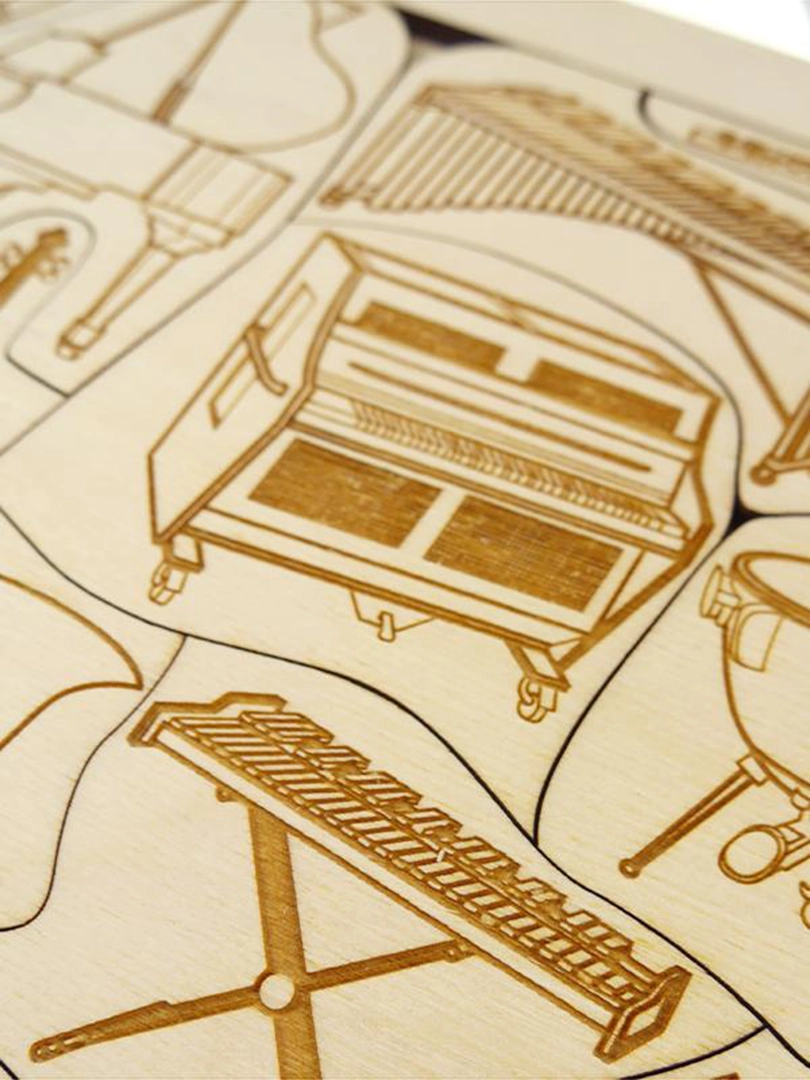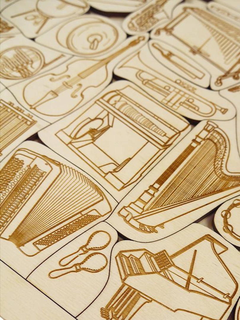 Puzzle Wszystko gra to wyjątkowa drewniana układanka edukacyjna stworzona przez Sounds Wood we współpracy z muzykami – śpiewakiem Capella Cracoviensis Przemysławem Bałką oraz absolwentką Akademii Muzycznej w Krakowie Marią Nowacką. Zestaw składa się z 37 elementów przedstawiających różnorodne instrumenty muzyczne, które można ułożyć w ramce o wymiarach 28 x 53 cm. Każdy element został starannie wykonany z bezpiecznego drewna i pomalowany bezbarwnym, bezzapachowym lakierem z atestem dla dzieci.