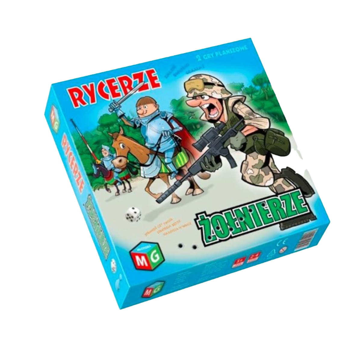 Rycerze/Żołnierze to zestaw zawierający dwie proste gry planszowe w bajkowej kolorystyce, przeznaczone dla 2-4 graczy od piątego roku życia.