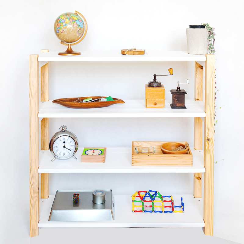 Ażurowy regał na pomoce Montessori i zabawki – duży – z 4 półkami
