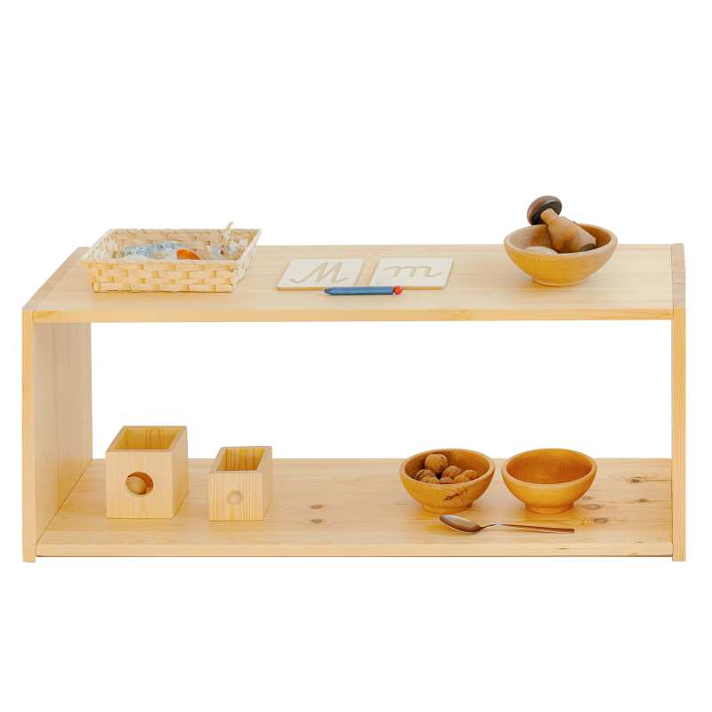Regał dla dzieci z 2 półkami drewniany do pokoju dziecięcego - Polana Montessori