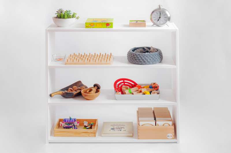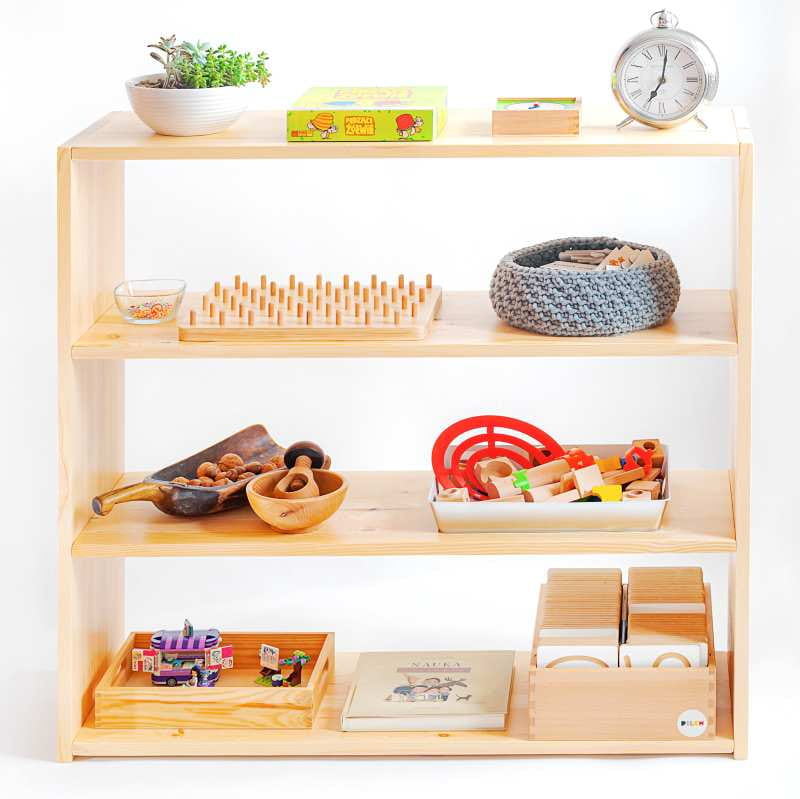 Regał dla dzieci z 4 półkami drewniany do pokoju dziecięcego - Polana Montessori