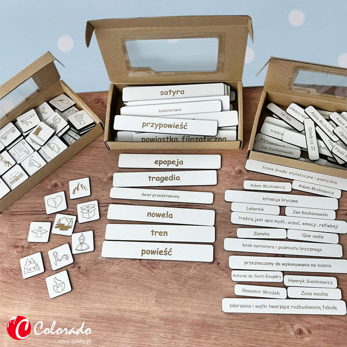 Literatura jest bogata i różnorodna, dlatego istotne jest usystematyzowanie jej elementów. Nasz zestaw "Rodzaje literackie" to idealne narzędzie, które pomoże dzieciom zrozumieć, jak klasyfikować i analizować różne dzieła literackie. W zestawie znajdują się nazwy rodzajów literackich (liryka, epika, dramat), cechy rodzajów literackich, nazwy gatunków literackich, tytuły lektur obowiązkowych (egzamin ósmoklasisty), autorzy, symbole.