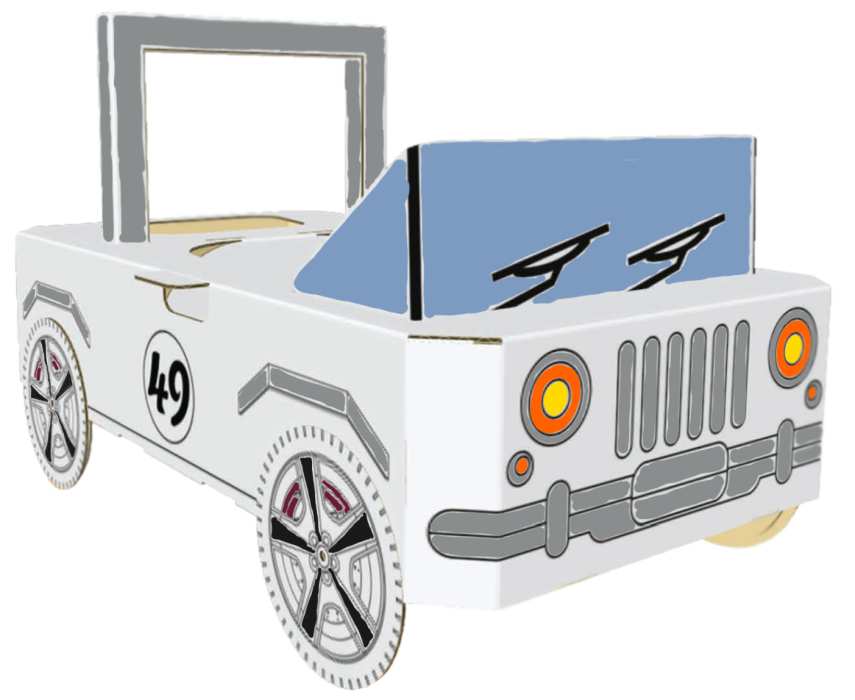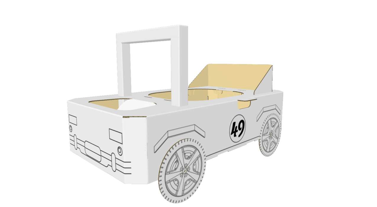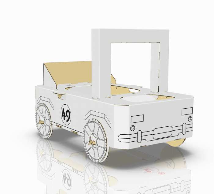 Tekturowe auto to kreatywna zabawka dla dzieci. Opatentowany wzór wyszedł spod ręki polskich projektantów i jest wyjątkową polską zabawką. To jednak nie tylko zabawka kreatywna, którą dziecko może złożyć i pokolorować kredkami, pisakami lub farbami, ale także autko do zabawy. Kartonowy samochód posiada bowiem ruchome koła, a do jego środka wskoczyć może każdy smyk. Dzięki temu pomysłowi chłopcy i dziewczynki mogą podróżować po domu, ale także na zewnątrz. W bagażniku tekturowego pojazdu schować można walizki i drewniane zabawki niczym w taksówce. Kartonowy samochodzik złożyć można bez pomocy kleju. Ekologiczna zabawka zrobiona z naturalnych, biodegradowalnych elementów to idealny sposób na to by wspólnie z maluchem spędzić czas. Przyjazna dzieciom i środowisku twórcza zabawka plastyczna rozwinie zdolności manualne brzdąców. Pobudź wyobraźnie i artystyczne zdolności dziecka i zabaw się w inżyniera i mechanika w jednym.