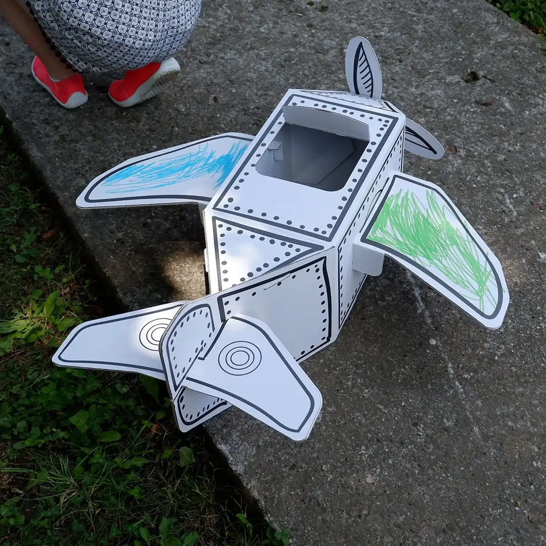 - Kreatywność i wyobraźnia: dzieci mogą kolorować i ozdabiać samolot z tektury według własnych pomysłów.