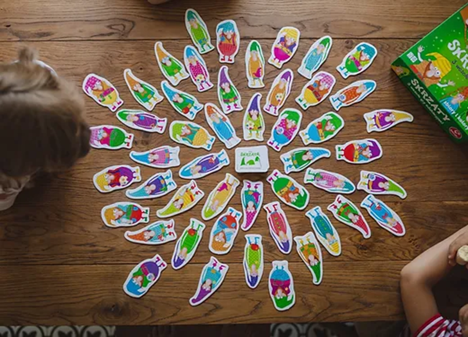 „Skrzaty” to barwna i pełna radości gra planszowa od Kukuryku, która wprowadza dzieci w świat kolorów, wzorów i kształtów. Dzięki trzem różnorodnym wariantom rozgrywki, gra zapewnia długie godziny edukacyjnej zabawy, rozwijając przy tym kluczowe umiejętności poznawcze najmłodszych.