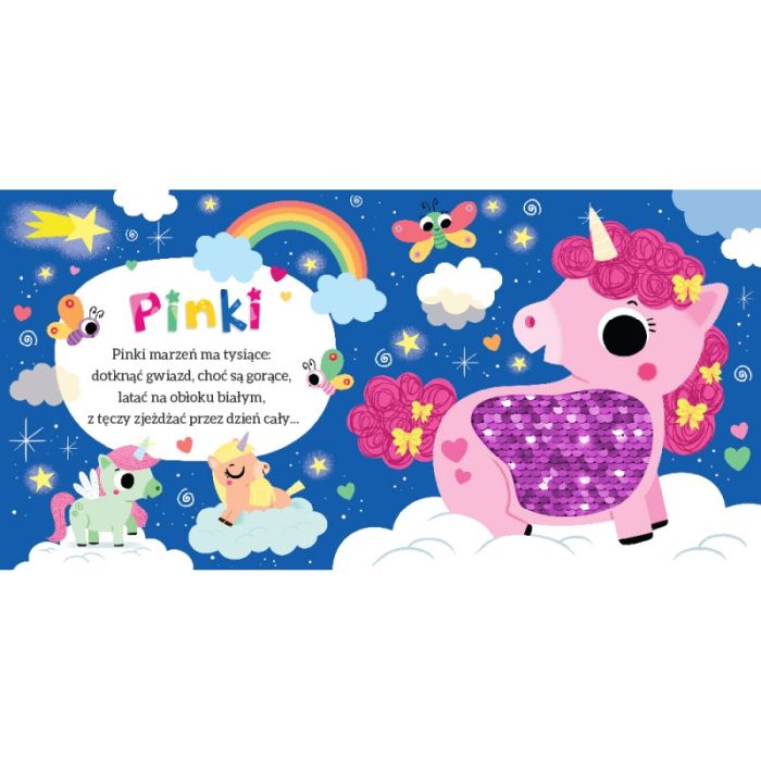 Słodkie jednorożce. Książeczka sensoryczna z cekinami dla dzieci w wieku 0-3 lata