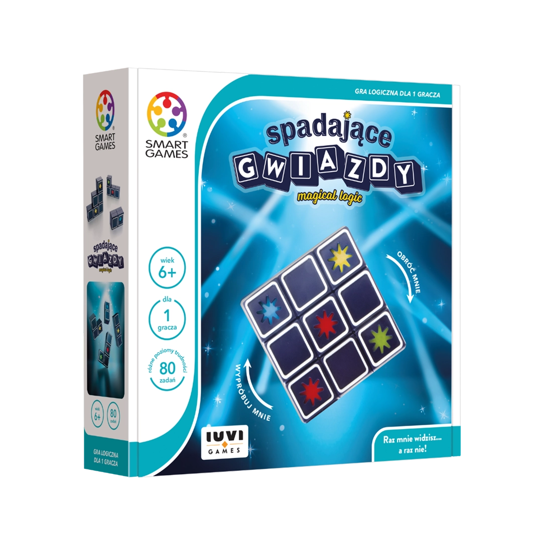Spadające Gwiazdy to unikatowa gra logiczna dla jednego gracza, przeznaczona dla dzieci od 6. roku życia. Gra zawiera 80 zadań o rosnącym poziomie trudności, które rozwijają spostrzegawczość, logiczne myślenie oraz percepcję przestrzenną. Dwustronne elementy z kolorowymi gwiazdkami zmieniają kolor w zależności od ułożenia, co czyni każdą rozgrywkę pełną magii i wyzwań.