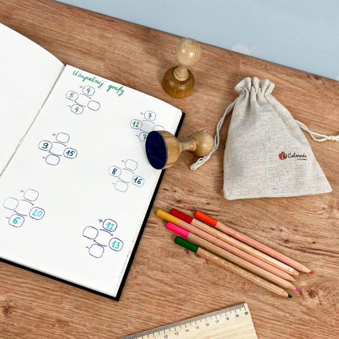 Praktycznie każdy świeżo upieczony uczeń odczuwa problem z rozwiązywaniem problemów matematycznych w wyobraźni. Jeszcze niedawno dziecko liczyło w końcu klocki czy układało matematyczne puzzle – to nie moment na przenoszenie obliczeń w całości do własnych myśli. Właśnie z tego powodu, podręczniki do edukacji wczesnoszkolnej obfitują w obrazki i grafy, stanowiące okres przejściowy pomiędzy matematyką „namacalną” i całkowicie abstrakcyjną. Stempel z grafami umożliwia ekspresowe przygotowanie własnych schematów dodawania i odejmowania. Przykłady rozwiązywane w domu też mogą być łatwe i przyjemne!