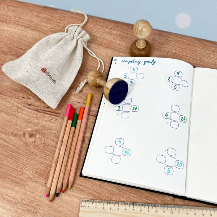 Każdy młody uczeń czasami boryka się z rozwiązywaniem problemów matematycznych w wyobraźni. Stempel z grafami umożliwia ekspresowe przygotowanie własnych schematów mnożenia i dzielenia. Przykłady rozwiązywane w domu też mogą być łatwe i przyjemne!