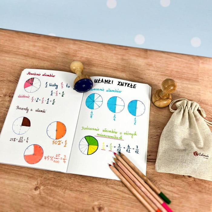 Stemple wykorzystać można zarówno do domowej nauki, jak i przyozdabiania szkolnego zeszytu. Uczeń, który zabierze na zajęcia zestaw stempli, zrozumie lepiej słowa nauczyciela – w kłopotliwym momencie wystarczy w kilka chwil zobrazować na kartce matematyczny problem. Dziecko, za sprawą kreatywnego akcesorium, łatwo zdobędzie też sympatię kolegów z ławki. Kto wie, czy nie stanie się ekspertem od ułamków, który podczas przerw będzie wyjaśniał zagadnienie innym!
