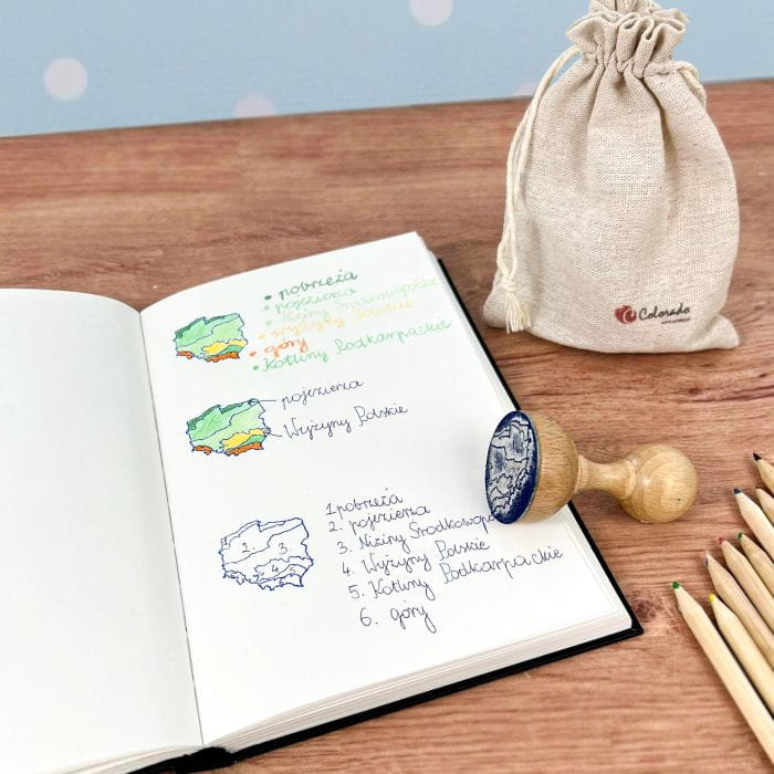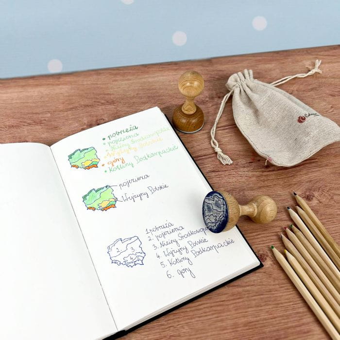 Stempel edukacyjny z pasami rzeźb terenu wspomaga sporządzanie notatek na lekcji – uczeń nie musi tracić czasu na odręczne rysowanie. Gadżet wspiera też domową edukację i pozwala na szybkie powtarzanie informacji bez potrzeby przygotowywania dodatkowych materiałów edukacyjnych. Rodzic lub nauczyciel może wykorzystać go do przygotowywania prostych kartkówek, lub notatek, którymi może wspomóc się dziecko.