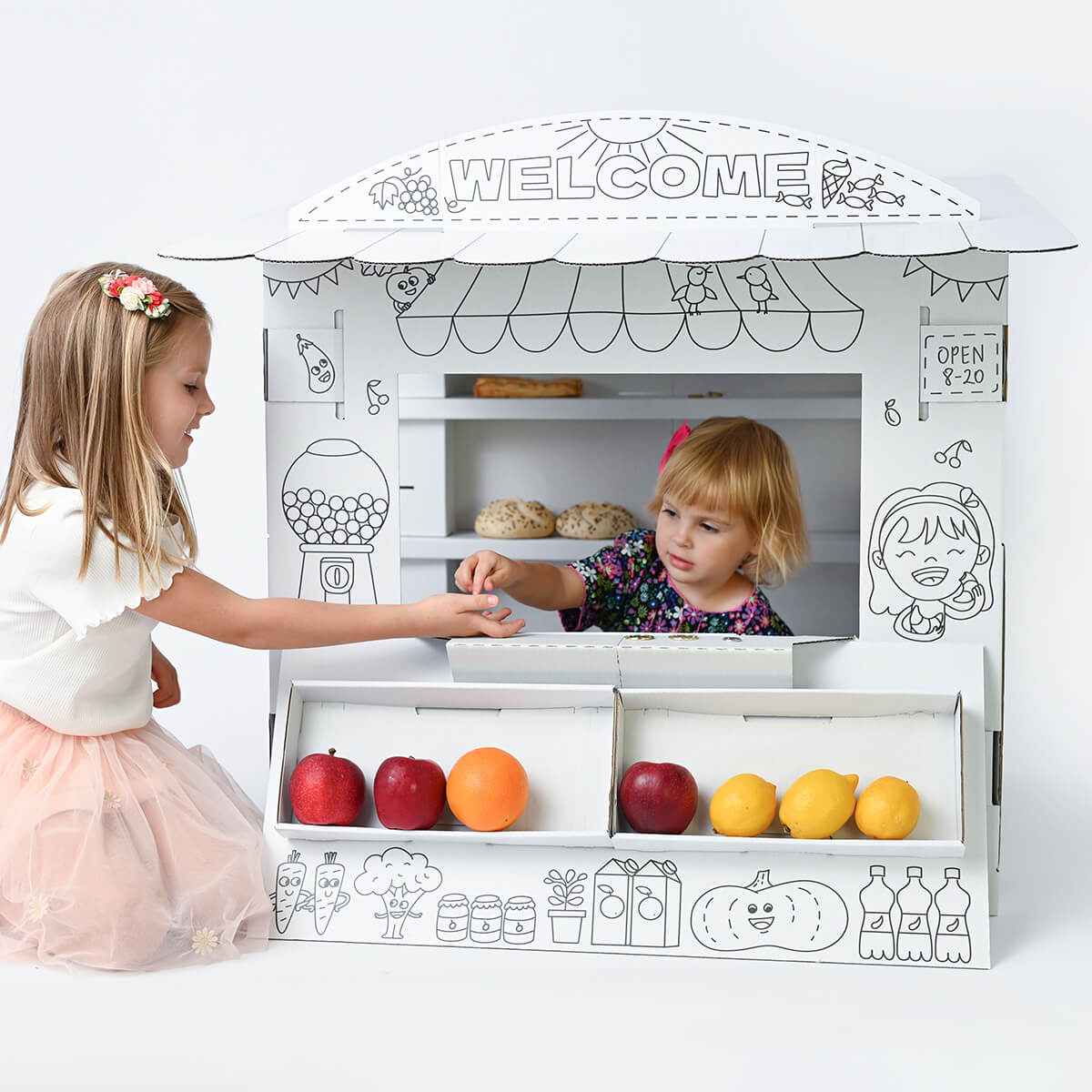Stragan sklepowy dla dzieci - zabawka z kartonu do składania i malowania