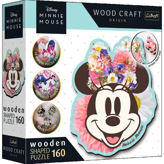 Ta unikatowa układanka oferuje 160 starannie zaprojektowanych elementów, w tym 10 specjalnych kształtów inspirowanych charakterystycznymi cechami Myszki Minnie.