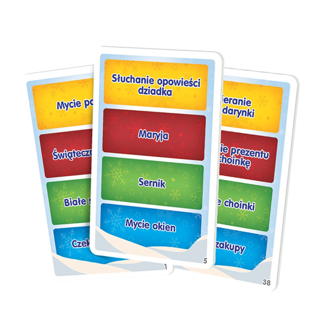 W grze Kalambury Święta zadaniem uczestników jest odgadywanie haseł poprzez rysowanie lub przedstawianie ich w formie pantomimy. Świąteczna gra planszowa wprowadza do klasycznych zasad gry kalambury elementy, które nawiązują do świąt, co sprawia, że doskonale wpisuje się w ten wyjątkowy czas. To idealny sposób na zabawę rodzinną, która angażuje wyobraźnię i pozwala uczestnikom wyrażać się kreatywnie. W opakowaniu znajdują się: plansza, klepsydra, pionki, specjalne karty z hasłami, notesik i inne niezbędne elementy, które gwarantują pełną rozgrywkę. Dzięki różnorodnym hasłom i świątecznym akcentom, gra rodzinna Kalambury to nie tylko sposób na spędzenie czasu, ale i doskonały trening dla kreatywności, komunikacji i współpracy.