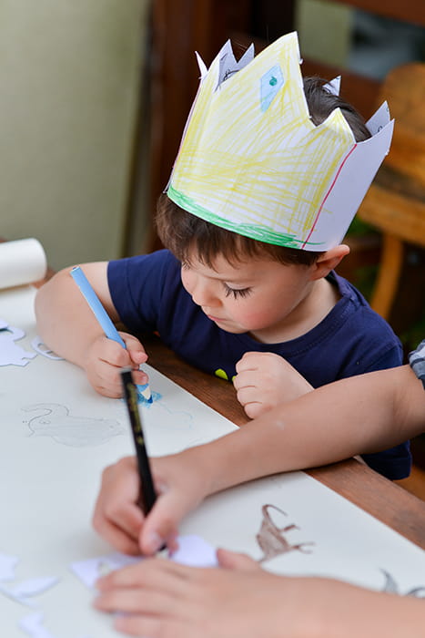 Wystarczy odrysować szablon na bloczku, pokolorować go i dorysować resztę tła, dodatkowe postacie i ozdoby, by stworzyć ciekawy obrazek. To daje możliwości wielu kombinacji, które wciągną dziecko na wiele godzin, pobudzając jego kreatywność i ucząc nowych umiejętności