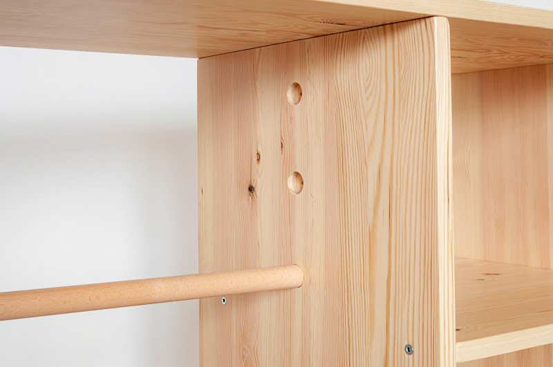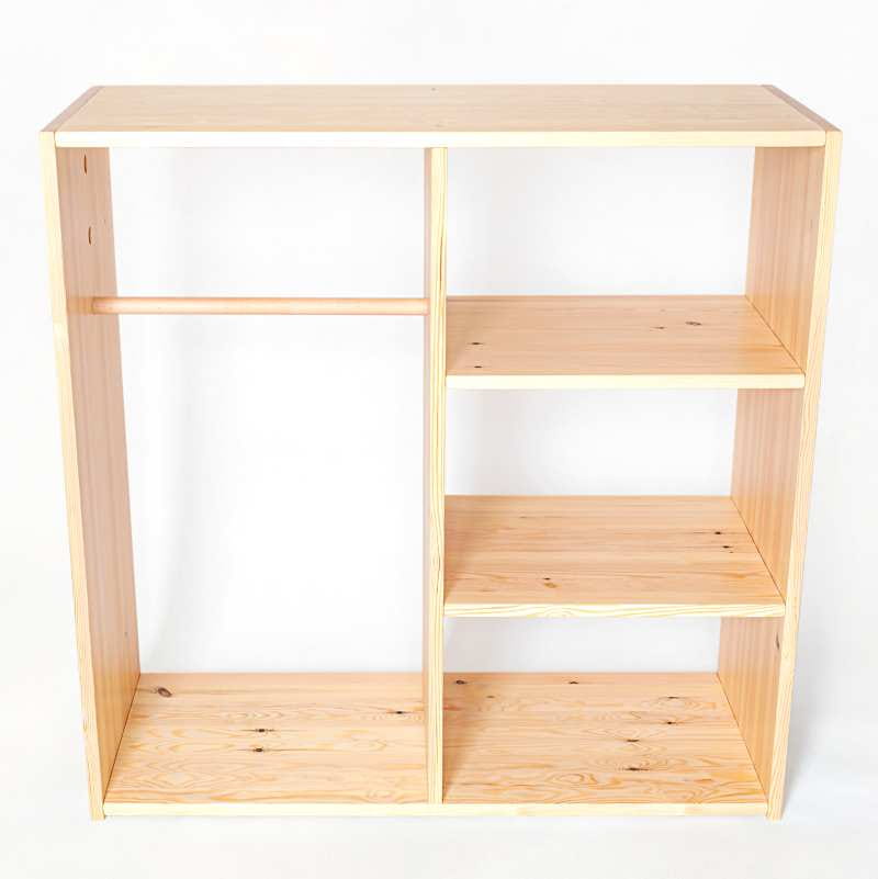 Oj, zmieści, zmieści. W naszej pojemnej drewnianej szafie dla dzieci zmieszczą się wszystkie kolorowe ubranka. Ręcznie wykonana w Polsce garderoba umożliwia wszystkim maluchom chowanie i wyjmowanie ubrań. Wiemy bowiem, że nauka samodzielności i utrzymania porządku jest bardzo istotna. Daje pewność siebie, uczy podejmowania szybkich decyzji. Pokryta bezpiecznymi i przyjaznymi brzdącom i przyrodzie lakierami. Poręczne drewniane półki i przestrzeń na powieszenie sprawią, że w dziecięcym pokoju lub przedpokoju zapanuje porządek. Na półeczkach z drewna można położyć koszyczki, pudełka czy też pojemniki z drobniejszymi elementami garderoby. Drążek do powieszenia natomiast może być montowany na trzech różnych wysokościach w zależności od wzrostu dziecka (dostosowane do dzieci 2-8 lat). Otwarta szafa sprawia, że dziecko uniknie przytrzaskiwania palców i łatwiej będzie mu umieścić ubrania na swoim miejscu.