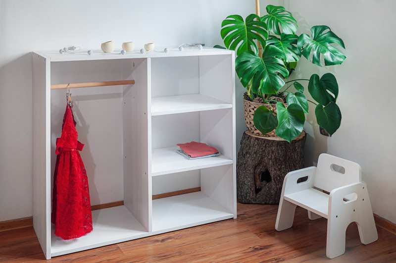 Garderoba dla dziecka / szafa do pokoju dziecięcego drewniana w kolorze białym lub naturalnym Polana Montessori