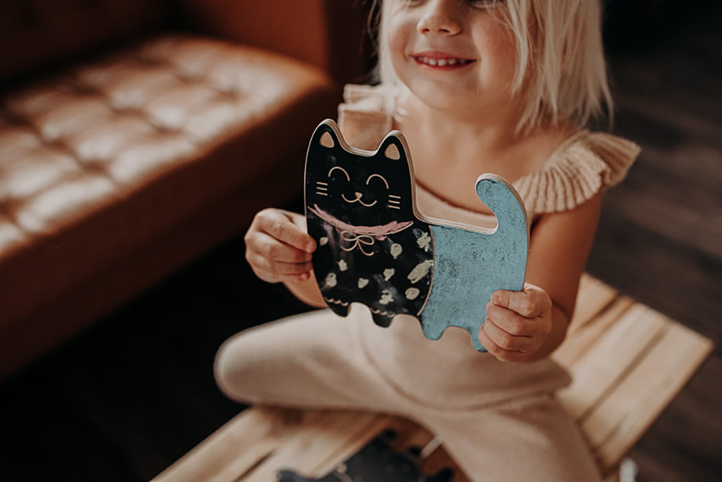 Sympatyczne zwierzątka to najlepsi przyjaciele dzieci. Nieważne, czy to żywe stworzenia, czy zabawki - zawsze mobilizują dzieci do zabawy. Kot Filip to tablica kredowa, na której maluch może rysować i kolorować, co tylko przyjdzie mu do głowy. Jest na tyle niewielki, że bez problemu zmieści się do plecaka czy torby, dzięki czemu może towarzyszyć Twojemu dziecku wszędzie, a jednocześnie na tyle duży, by zapewnić sporą powierzchnię do rysowania. Kot Filip został stworzony ze sklejki brzozowej pokrytej farbą tablicową. Dzięki temu jest odporny na ścieranie, nawet przy dłogotrwałym i wielokrotnym użytkowaniu.