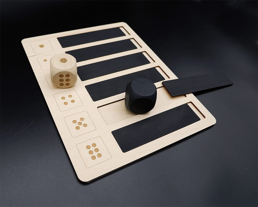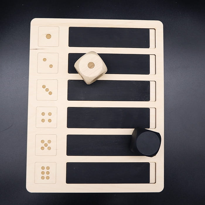 Pisanie na tablicy nie jest zbyt proste dla Twojego malucha? Nic dziwnego – dziecko przyzwyczajone do zapisywania notatek tak, jak mu się podoba, może mieć problem z dostosowaniem się do szkolnej rzeczywistości. Naukę rozwiązywania zadań przy pomocy kredy uprzyjemni mu pomoc edukacyjna – tablica kredowa wraz z kośćmi. Planszę zapełnić można wyjmowanymi tabliczkami, zachęcając dziecko do zapisania tuż obok liczby z emblematu. Za sprawą standardowej kostki, maluchowi zaproponować można jednak również wykonanie w pełni losowego działania. Dziecko może np. spróbować dodać do siebie kolejno trzy wylosowane liczby, zapisując działanie i wynik na tablicy. Za sprawą pracy z zestawem, maluch oswoi się z obecnością tablicy, nauczy się zapisywać w poprawny sposób działania matematyczne, a również: zapozna się z oczkami kości, wykorzystując ich znajomość we wszelkich grach towarzyskich. Po wyjęciu tabliczek z symbolem oczek, zestaw można wykorzystać też do zapisywania jakichkolwiek innych słów czy pojęć: ogranicza Was tylko wyobraźnia!