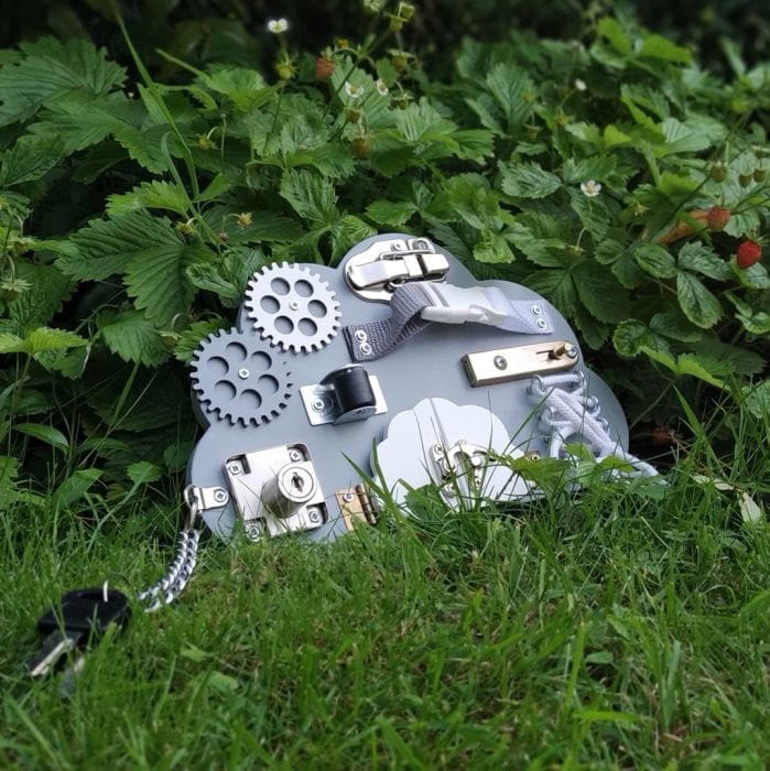 Dla małych ciekawych świata dzieci polecamy mini tablice manipulacyjne w kształcie chmurek. Tablica manipulacyjna została wykonana własnoręcznie przez polskiego producenta. Ćwiczy u dziecka motorykę a także wyobraźnię. Z pewnością zajmie czas dziecku podczas podróży, wszędzie tam, gdzie maluch potrzebuje pochłaniającego zajęcia. Mała tablica Montessori (25×16) pozwala nie rozstawać się z nią na krok, a wpłynie pozytywnie na rozwój dziecka przez świetną zabawę