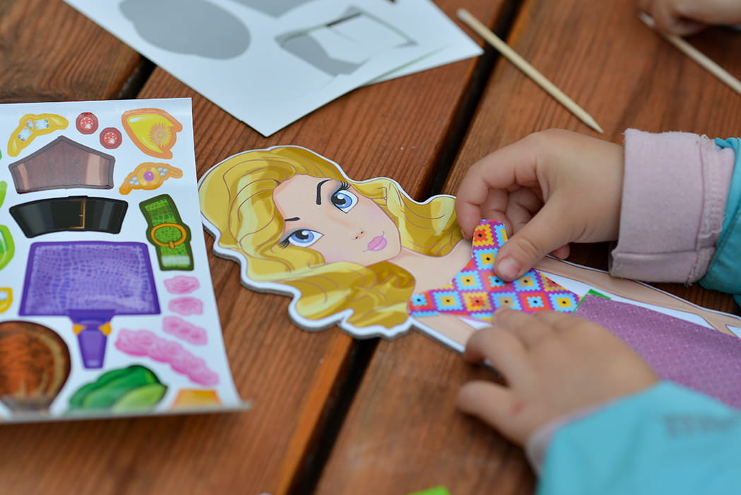W zestawie znajduje się aż 13 plansz do wycinania, 2 plansze z elementami samoprzylepnymi, postać modelki z tektury, taśma przylepna, 2 elementy stojaka oraz patyczek i instrukcja. To kompletna zabawka, która rozwija sprawność manualną, cierpliwość, koordynację wzrokowo-ruchową i zmysł artystyczny.