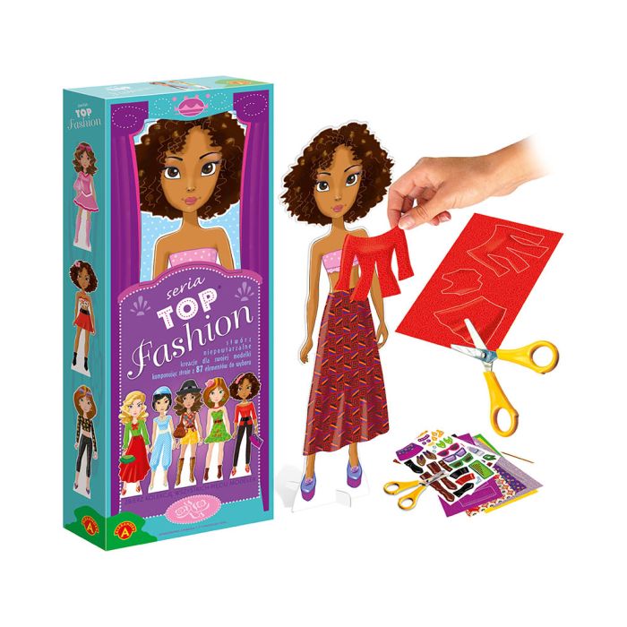 Top Fashion Modelka 5 Alexander to wyjątkowa zabawka kreatywna rozwijająca wyobraźnię, zdolności manualne i poczucie estetyki. Dziecko może samodzielnie projektować ubrania, wycinać kreacje i tworzyć własne stylizacje modowe.