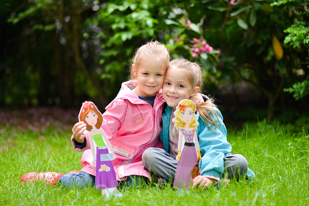 W pudełku znajduje się aż 14 plansz do wycinania ubrań, 2 plansze z samoprzylepnymi elementami, postać modelki z tektury, taśma przylepna, stojak oraz patyczek do precyzyjnego naklejania. Po wykonaniu stroju modelkę można ustawić w pozycji pionowej, by zaprezentować gotową kreację.