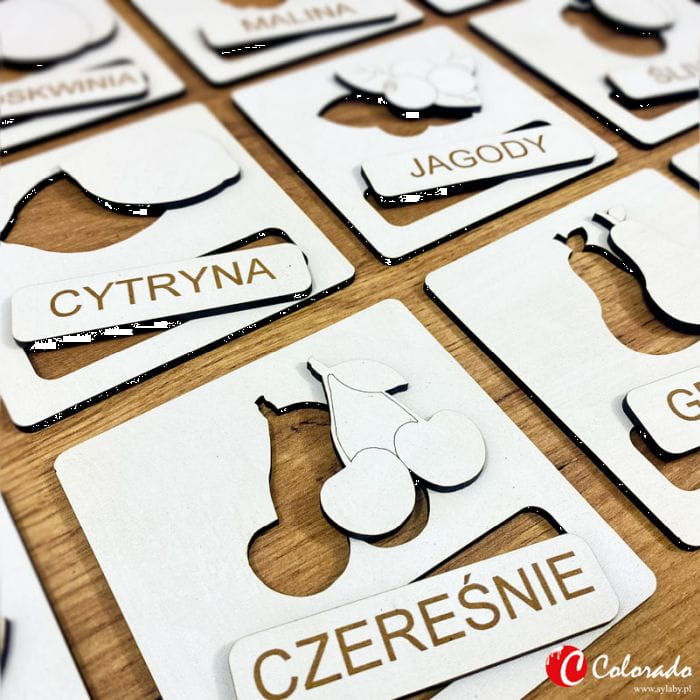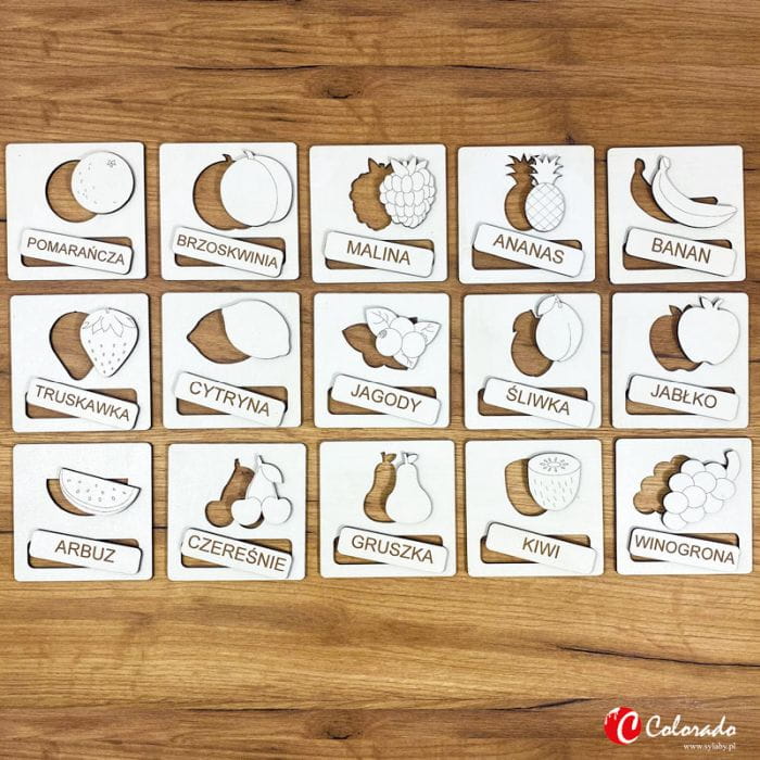 Rozwijanie słownictwa: Każdy element układanki posiada nazwę danego owocu, co pomaga wzbogacić słownictwo dziecka oraz rozwijać umiejętność nazywania i rozpoznawania owoców.