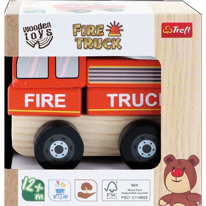 WÓZ STRAŻACKI - Trefl - Fire Truck- drewniane auto z klocków 1+