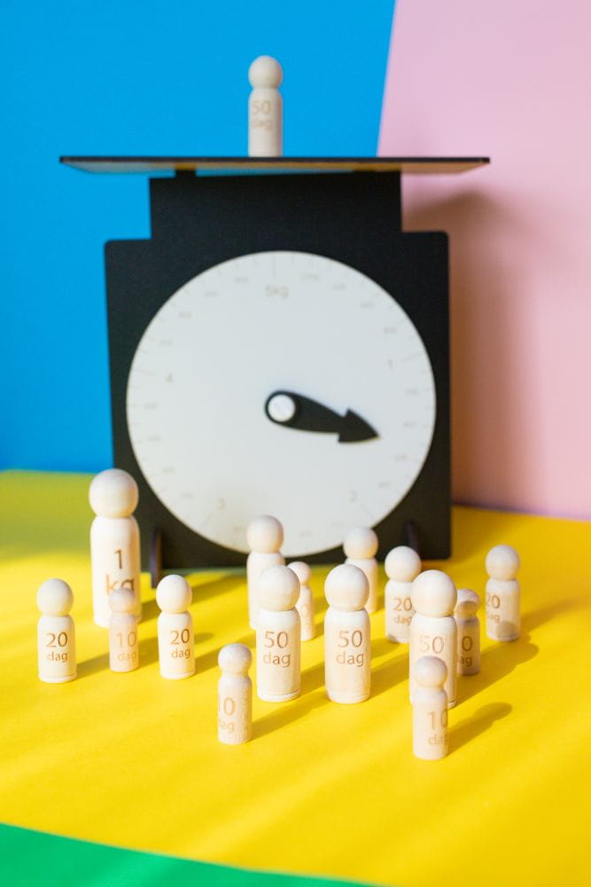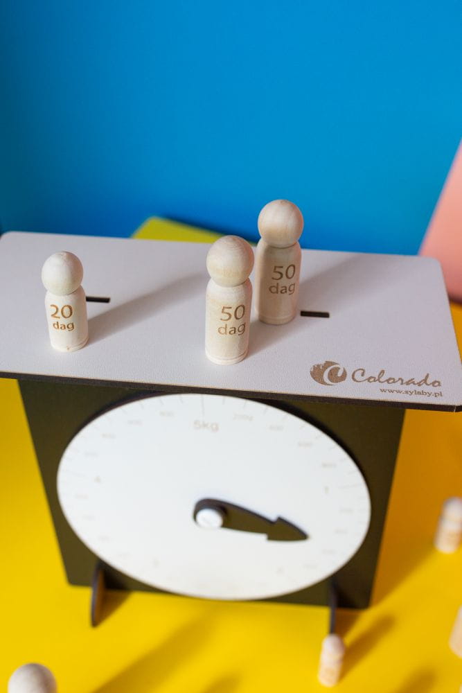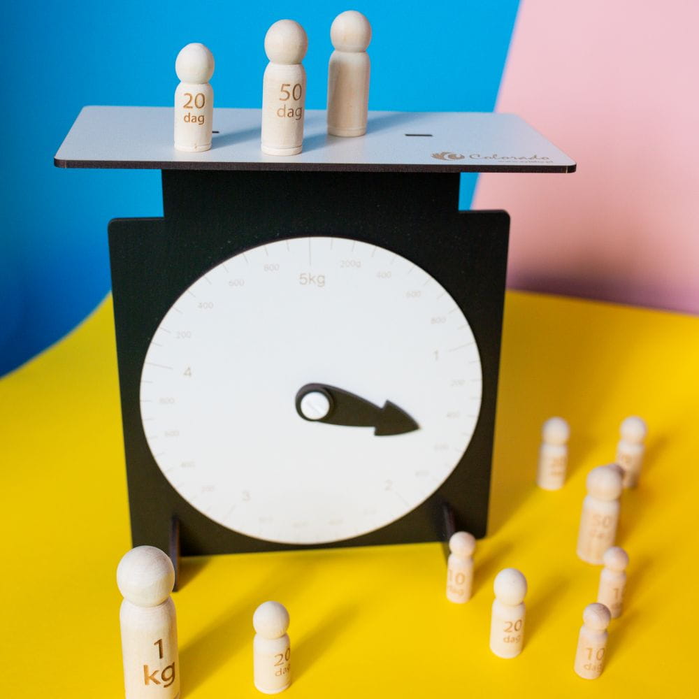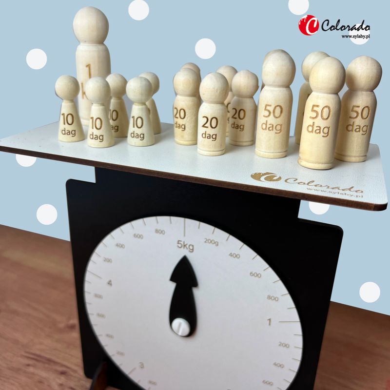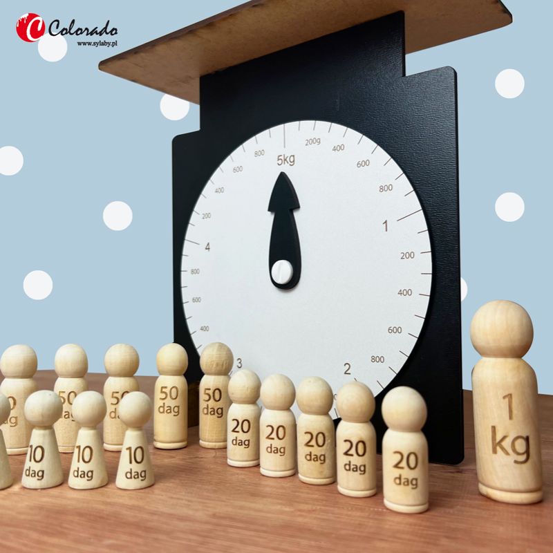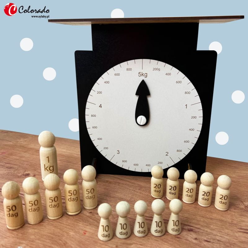Z pomocą przychodzi waga do nauki zamiany jednostek masy - zabawka edukacyjna, dzięki której niezbędne obliczenia będzie można niezwykle łatwo zwizualizować. Zadanie polega na wybraniu dowolnej ilości odważników znajdujących się w zestawie (10 dag, 20 dag, 50 dag oraz 1 kg) i wskazanie ich łącznej masy za pomocą wskazówki znajdującej się na wadze, której tarcza wskazuje gramy oraz kilogramy. Można również zacząć od ustawienia wskazówki, a następnie dobrać odpowiednie odważniki. W ten sposób dziecko może łatwo ćwiczyć proste dodawanie oraz przeliczanie między jednostkami masy, a przy tym również dobrze się bawić. Zabawka sprawdzi się zarówno w domu, jak i w szkole.