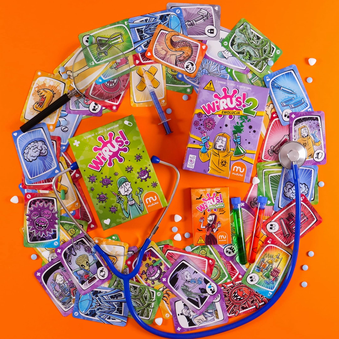 Wirus 2 Ewolucja to rozbudowany dodatek do gry karcianej, który przenosi popularną rozgrywkę na zupełnie nowy poziom. Jeśli podstawowa wersja gry dostarczała emocji, to teraz możesz spodziewać się jeszcze większej dawki strategii, zaskoczeń i dynamicznych zwrotów akcji. W tej odsłonie wirusy mutują, stają się bardziej niebezpieczne, a tradycyjne metody leczenia przestają być skuteczne – czas sięgnąć po nowe rozwiązania!