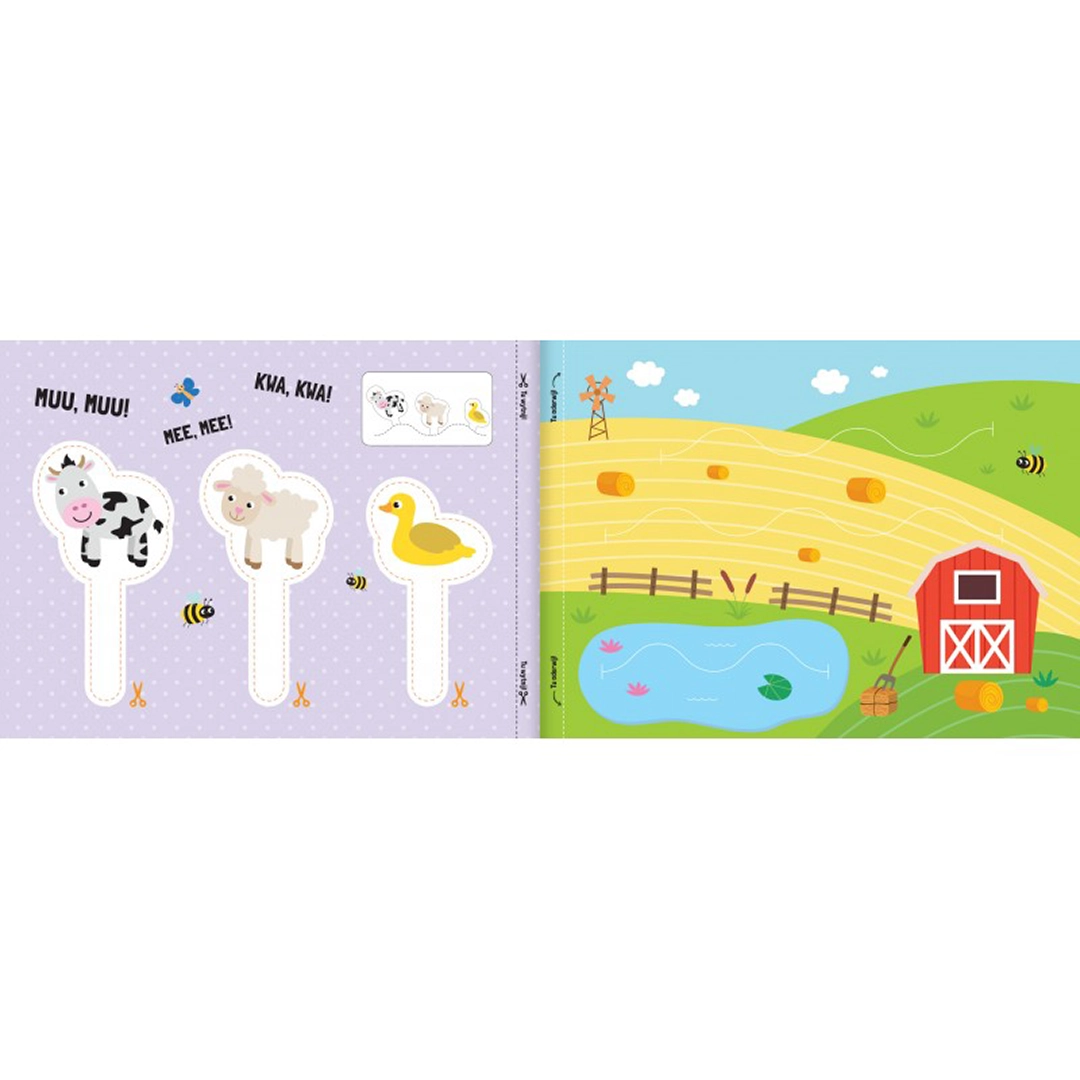 Wycinanki przedszkolaka. Zwierzęta na wsi to książka, która uczy dzieci samodzielnego wycinania i odgrywania scenek teatralnych. Dzięki perforowanym stronom i ilustracjom zwierząt, maluchy mogą łatwo wyciąć postaci, takie jak kaczka, owieczka czy kot, a następnie umieścić je na planszach. Zabawa w teatrzyk rozwija kreatywność, koordynację ruchową oraz umiejętności społeczne. Idealna do zabawy zarówno w pojedynkę, jak i z innymi dziećmi.