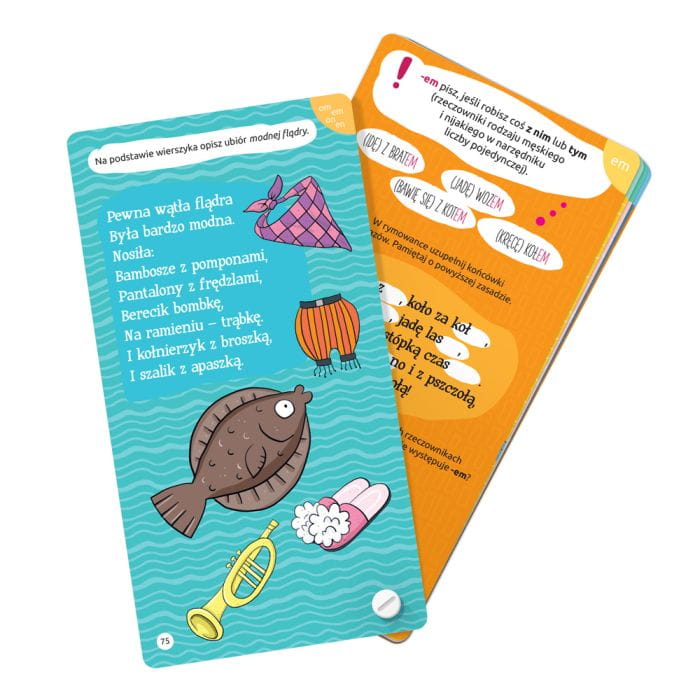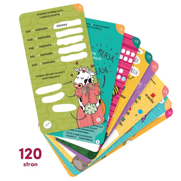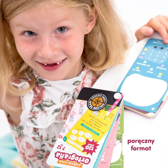 Gra edukacyjna „Zakręcona ortografia” odczarowuje ortografię, pokazując, że można opanować ją bez żmudnego powtarzania reguł. Zawiera kolorowe łamigłówki, pytania w formie quizu, rysowanki, wierszyki z dodatkowym poleceniem i mnogość innych zadań – uczy, nie pozwalając na nudę! Gra udowadnia dziecku, że ortografia nie musi być trudna, a w nauce liczy się najbardziej spostrzegawczość, kreatywność i dociekliwość.